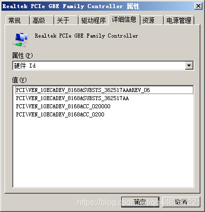 设备ID以PCI开头,表示这是PCI设备,VEN_10EC&DEV_8168,表示设备的VID=0x10EC,DID=0x8168。