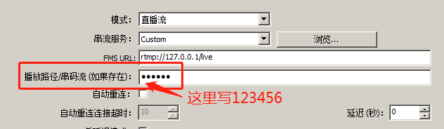 比如改为:rtmp://127.0.0.1/live/123456,那么就得到一条名为123456的直播流。