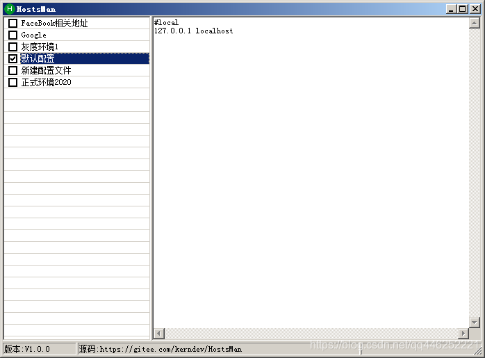 终于一个界面丑陋,功能简单的hosts切换工具就产生了。