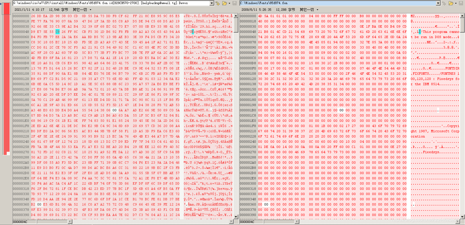 再看看文件内容,找一个已知内容的文件进行对比,发现文件内容变成面貌全非,并且文件长度也发生了变化。 文件长度增加了258字节,应该是添加了一串解密的信息在里面。