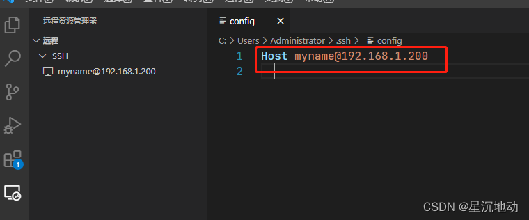 在VSCode 1.80版本以前,我发现可以使用下面的方式添加SSH远程连接,添加远程主机时,把用户名写在前面。 如下图所示myname就是登陆的用户名。